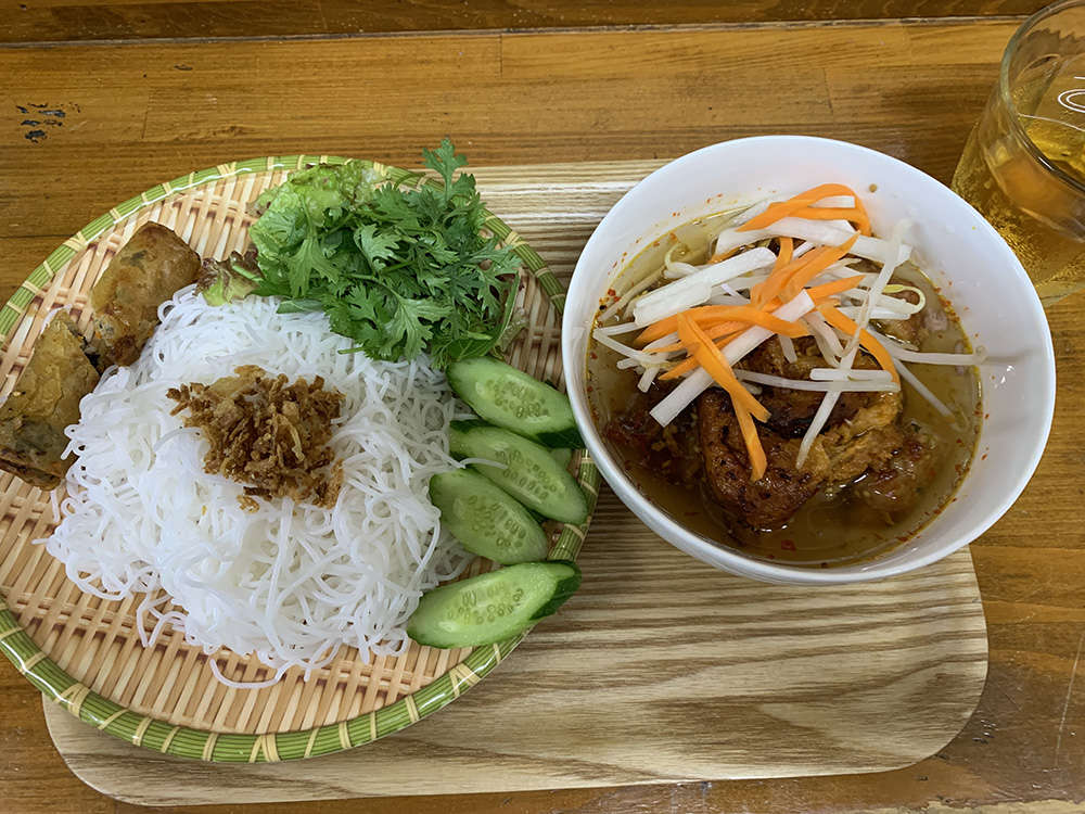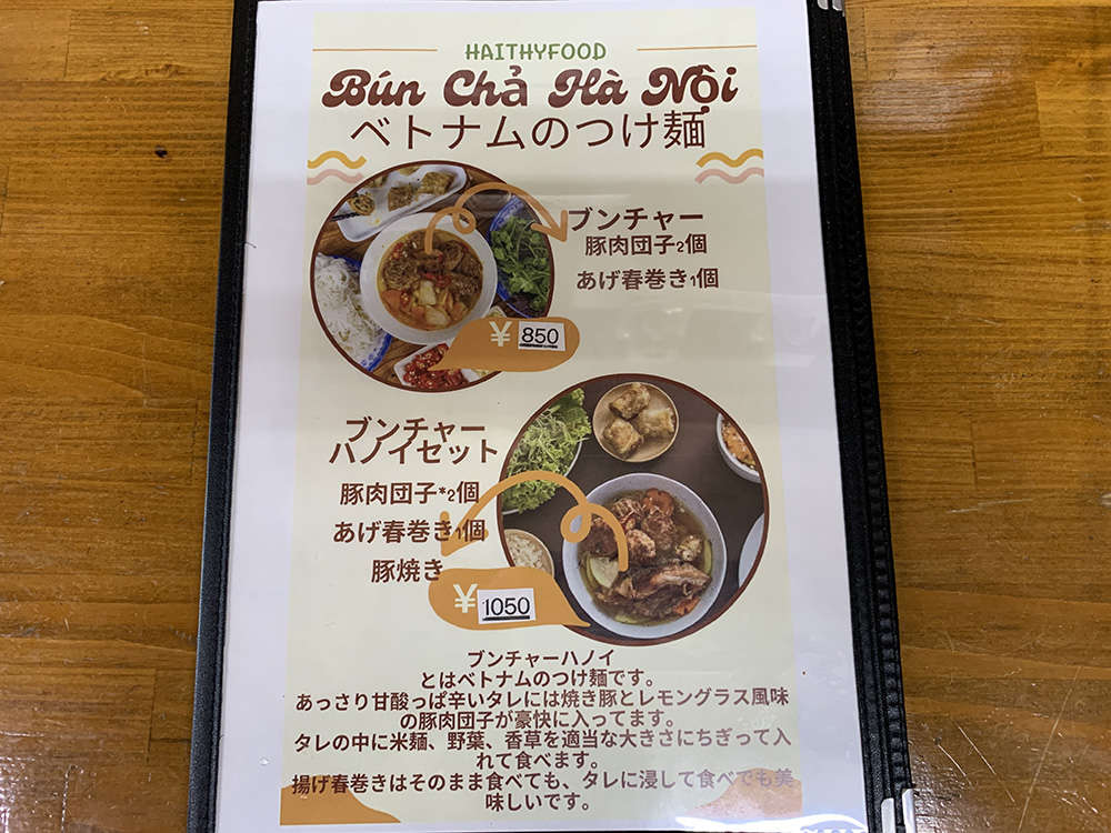 バインミーもなかなか美味しそうなのですが、私はお得なセットメニューの「ブンチャーハノイセット」を注文しました。ブンチャーハノイとはベトナムつけ麺のことです。