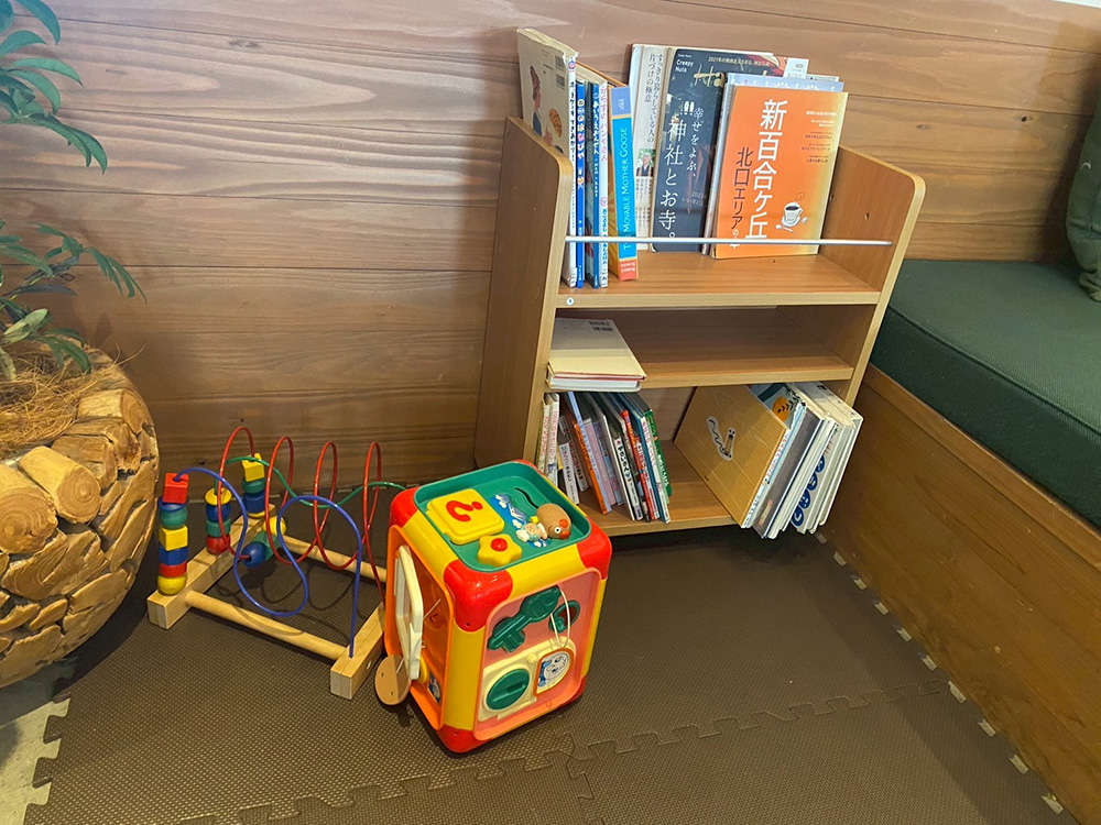 店内には小さなキッズスペースや絵本が用意されており、お子さんを見守りながらママ会を開くこともできます。安心して親子で利用できるのは、地域のカフェとして大きな魅力ですね。