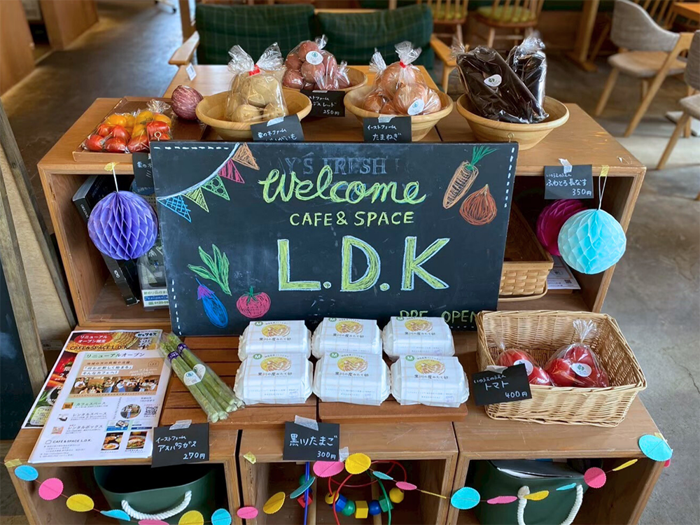 地元野菜や作家さんによる手作り雑貨の販売スペースもあり、買い物のついでにふらりと立ち寄るのにもぴったり。