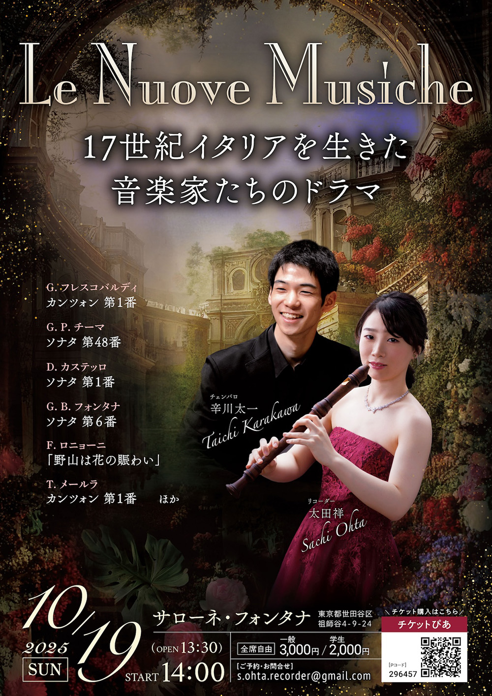17世紀イタリアの美しく心揺さぶられる音楽を、リコーダーとチェンバロのデュオでどうぞお楽しみください。