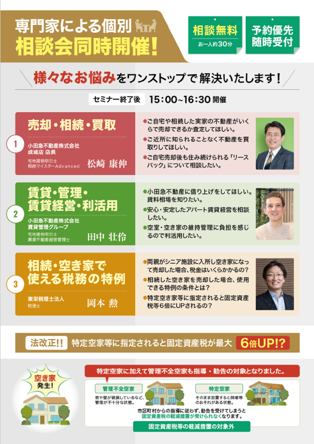 相続・空き家で使える「税務の特例」に関しても不動産に精通している税理士をお招きして徹底解説いたします!