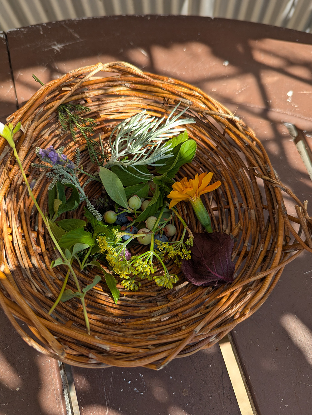 珍しいメニューにハーブ摘み取り、ハーブソルト作り体験がありました。