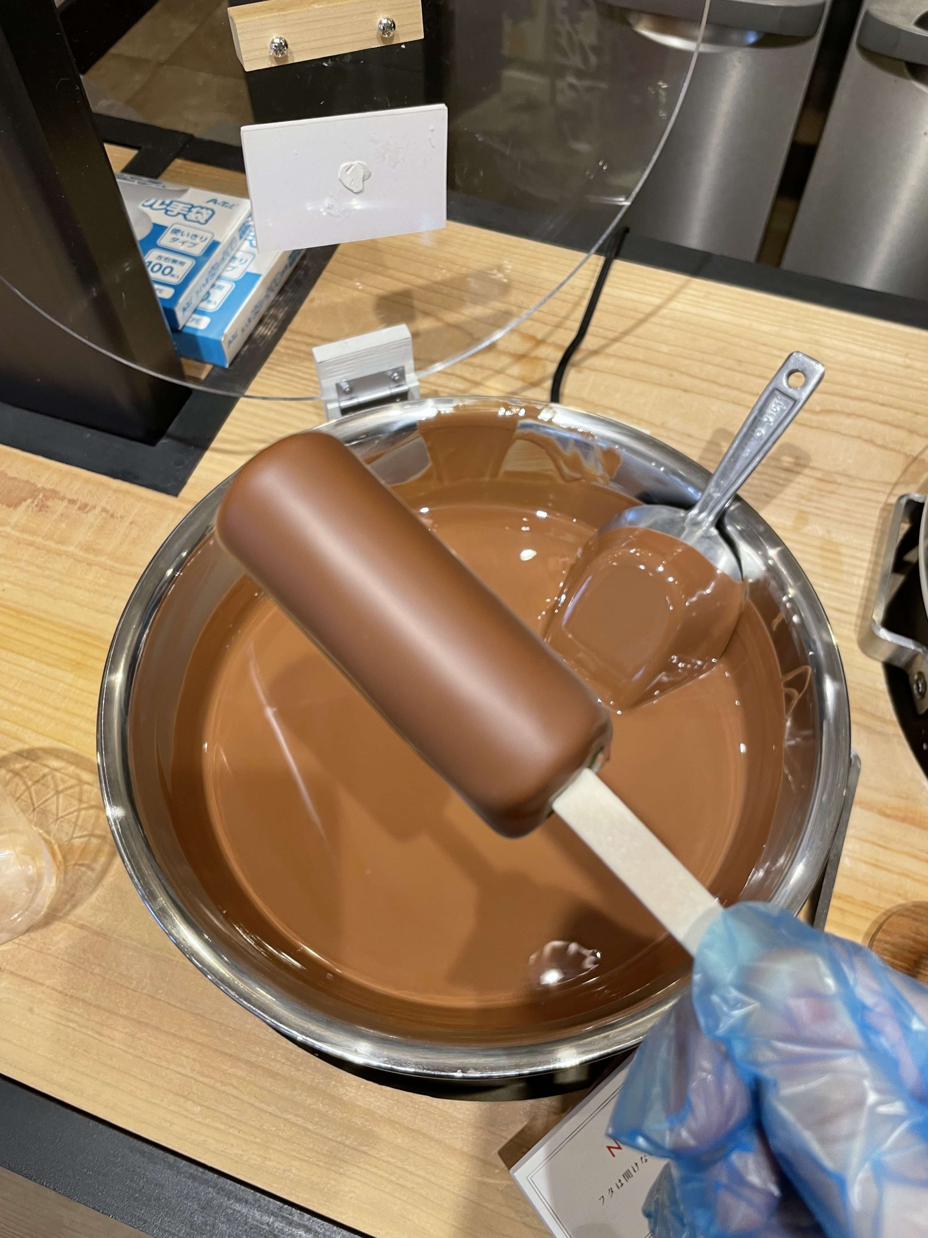 冷たいアイスに滑らかにとろけるチョコレートをコーティング。