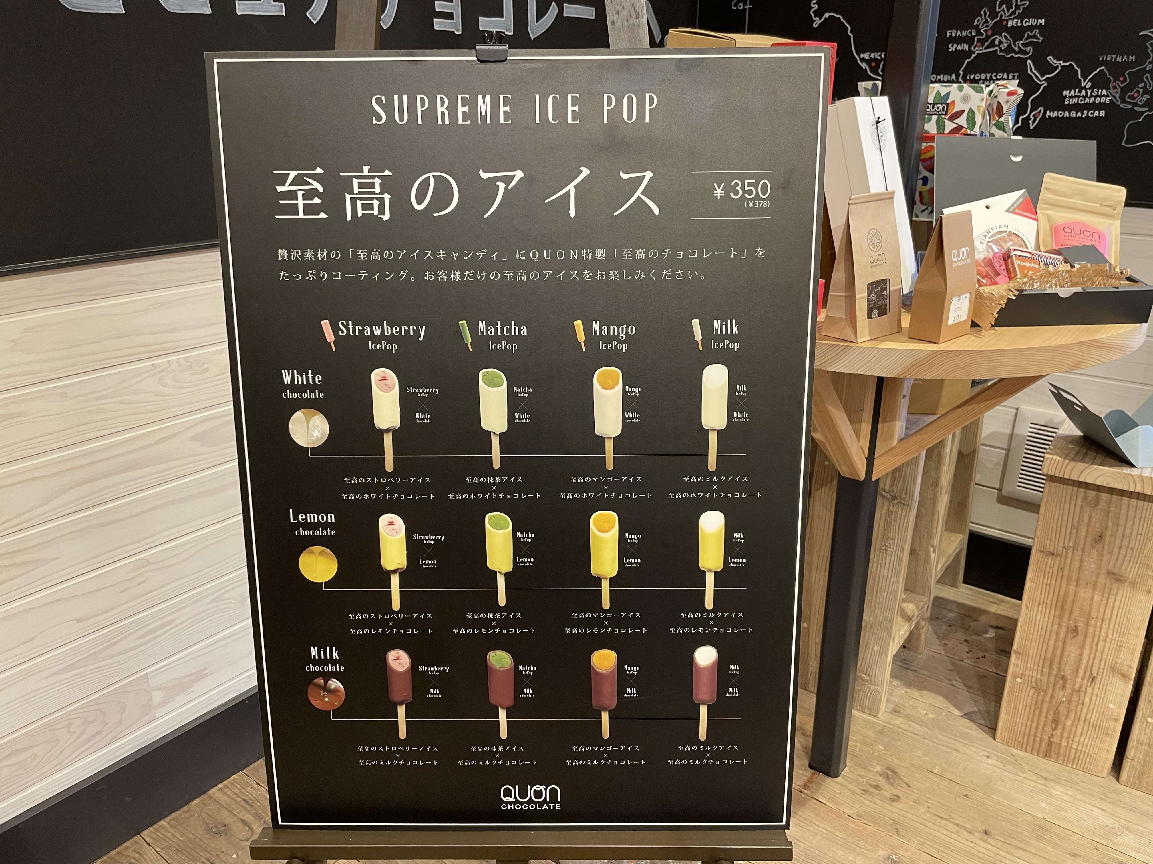 QUONはチョコレート専門店ですが、テイクアウトのみでアイスも販売しています。