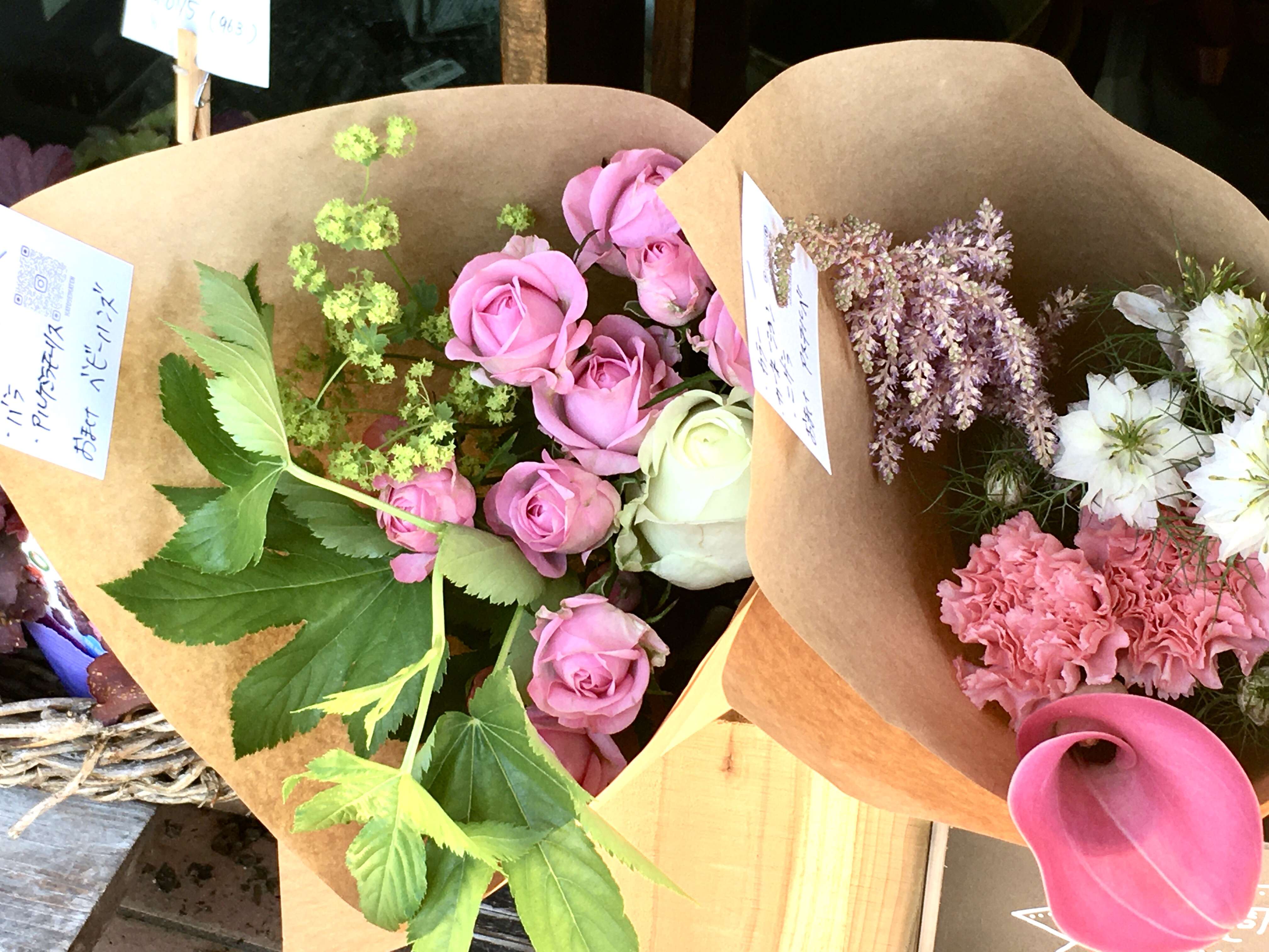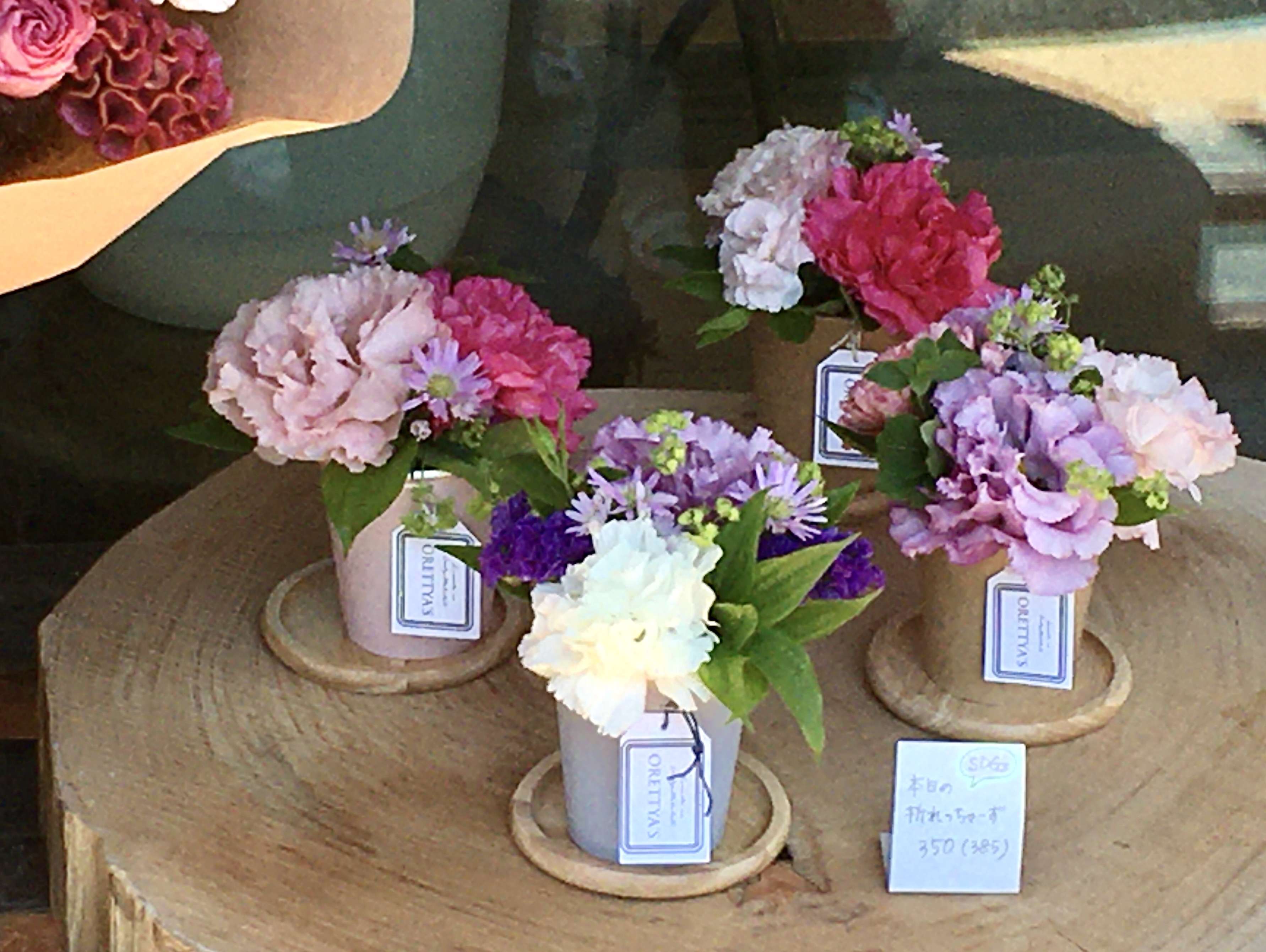 店の外にはきれいな組み合わせの切り花のセットが有り、鮮度が良くリーズナブルです。