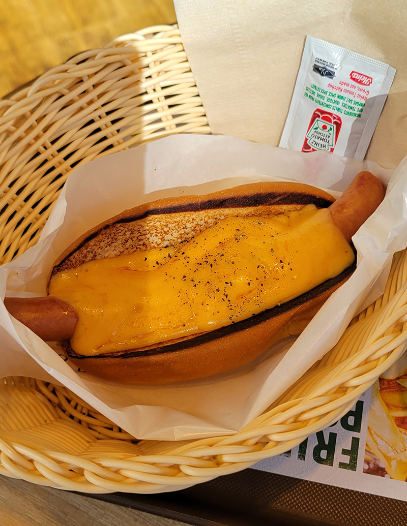 一押しはホットドッグの上にたっぷりとろけるチーズがかかったもの。