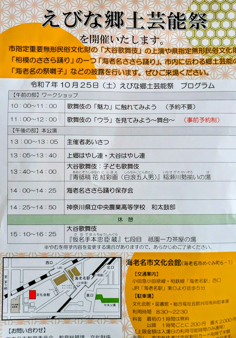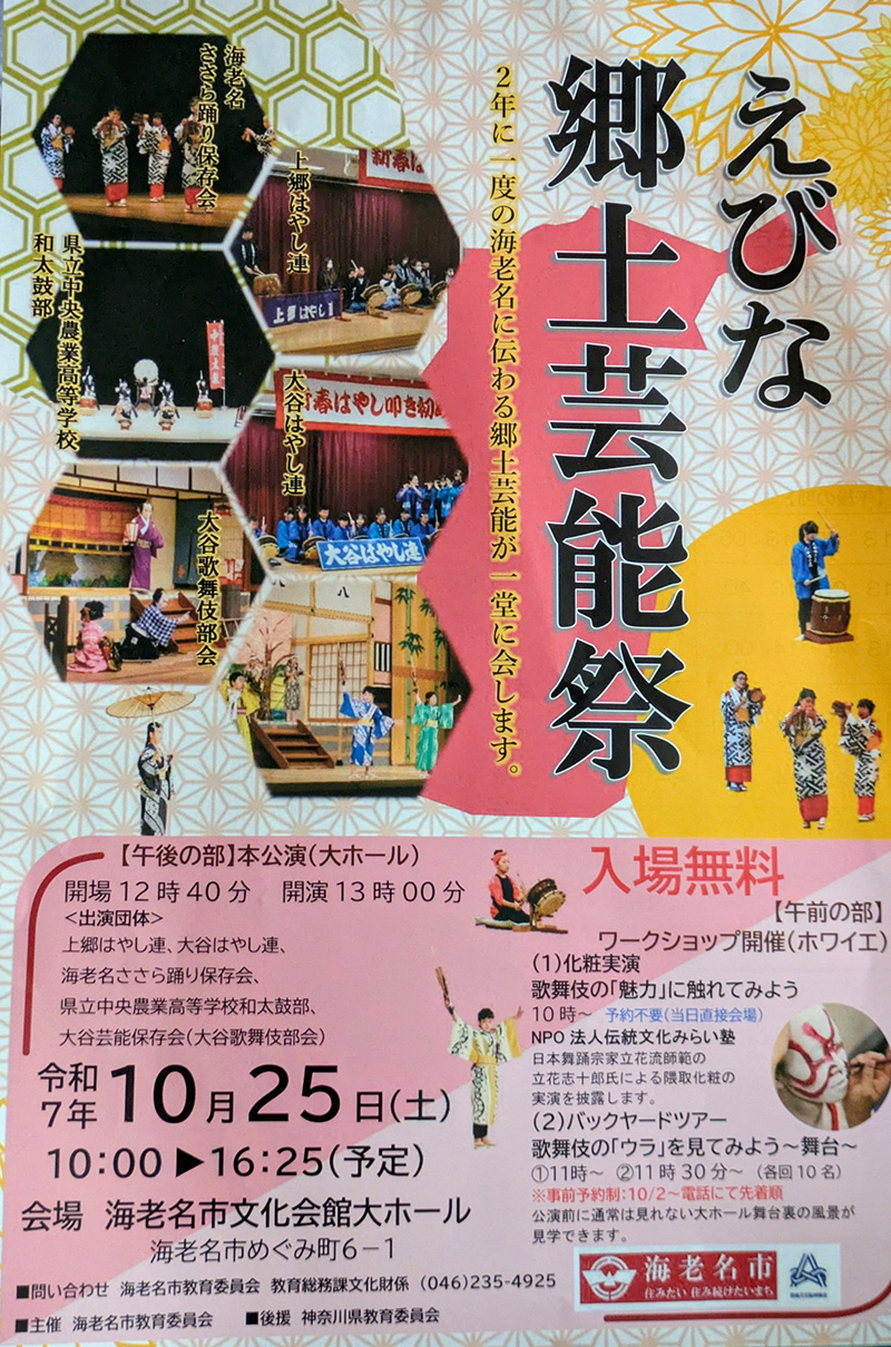 2年に一度の海老名に伝わる郷土芸能が一堂に会する「えびな郷土芸能祭」が開催されます。