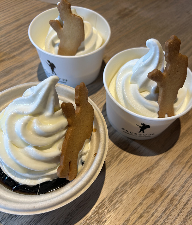 ケーキセットも美味しそうだったのですが、北海道山中牧場からの生乳を使って作られたソフトクリームがなんとも魅力的で、こちらを注文。上に乗っているクッキーも美味しく、素敵なカフェでした。