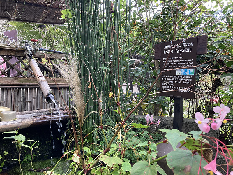 神奈川県の屋根、丹沢山地と大磯丘陵に囲まれた秦野盆地は、その地下が「天然の水がめ」となって市内至る所で湧水を見ることができます。この秦野の水を調理用、出汁とり、そば打ちに使用しているそうです。秋海棠の花がきれいに咲いていました。
