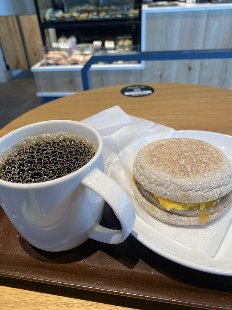 店内はスタバらしい落ち着いた色合い。グリーンが基調となっていました。フードも充実していてランチにマフィンを温めていただきました。朝7時から夜22時までしてくれているカフェは少ないので重宝されそうです。