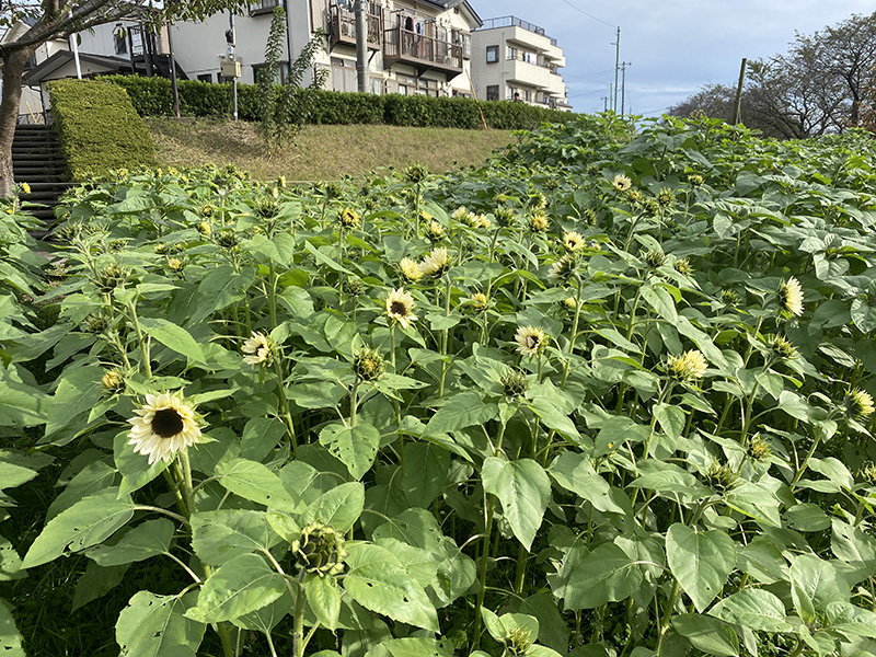 白いひまわりがたくさん開花してます!
