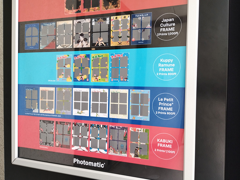 他にも、昔なつかしいクッピーラムネのフレームデザインや、星の王子さまのデザインなどもあります。