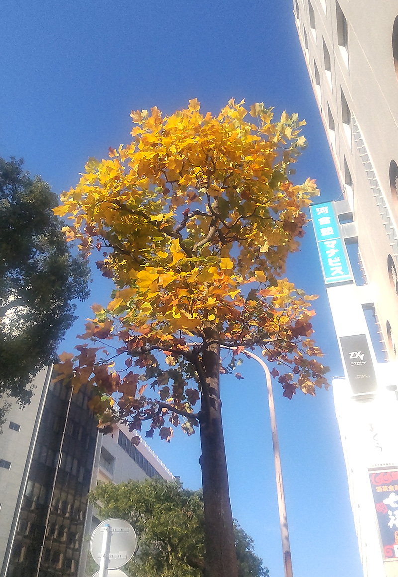 小田急デパートを左手に進むと、きれいな黄色の銀杏の木を見ることができる。