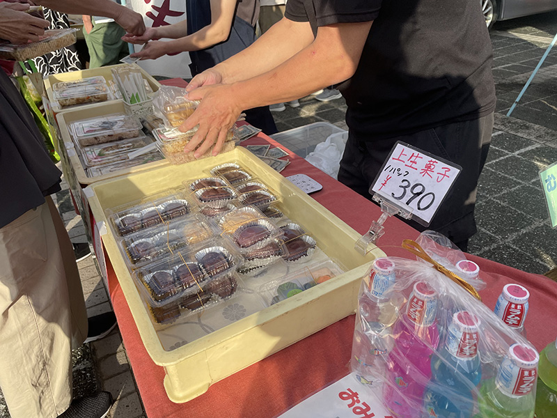 またお野菜以外にも地元のパン屋さん、和菓子屋さん、お肉屋さん、お豆腐屋さん、お味噌屋さんが来ています。