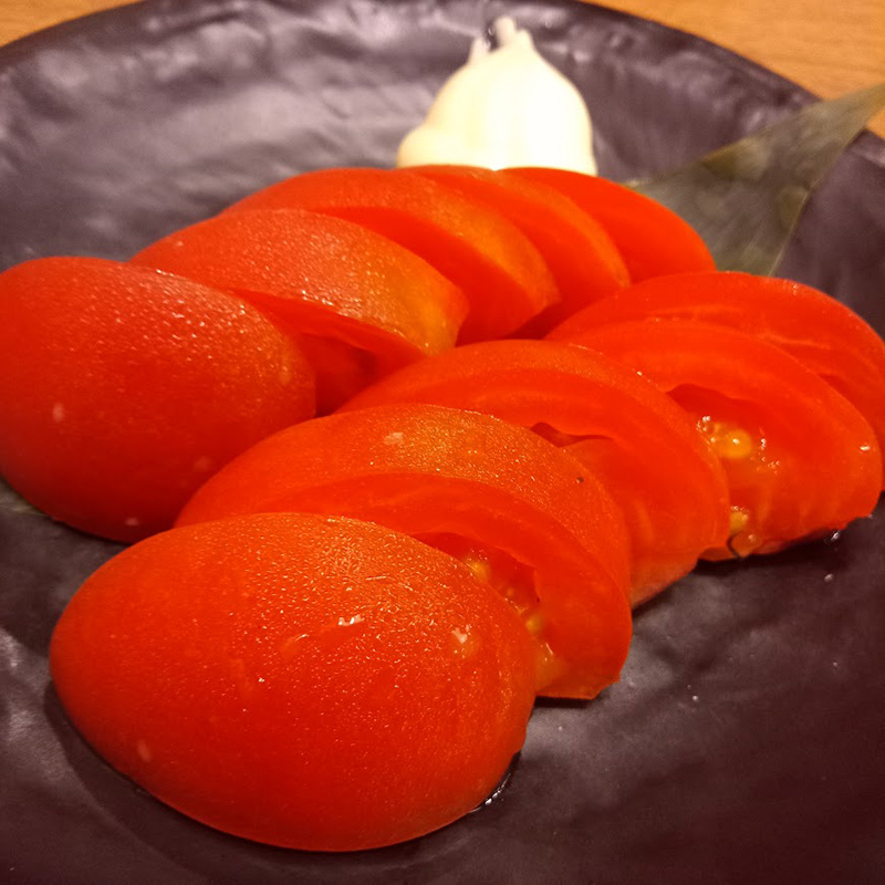 冷やしトマトも頼んで、口の中をさっぱりリセット。