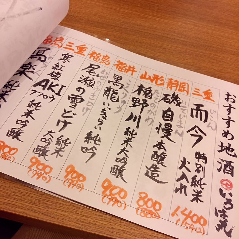 日本酒のラインナップが意外とすごくて、而今や田酒もあってびっくり。