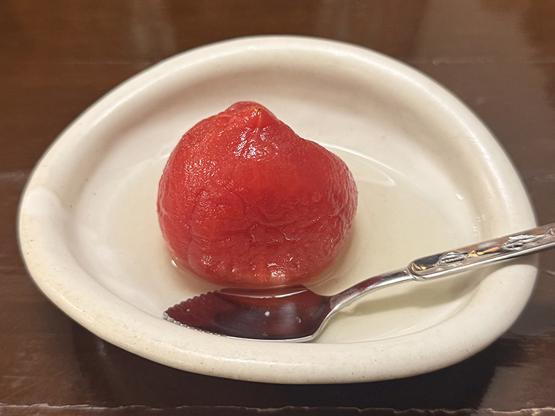 食後のトマトのデザートも爽やかで絶品。