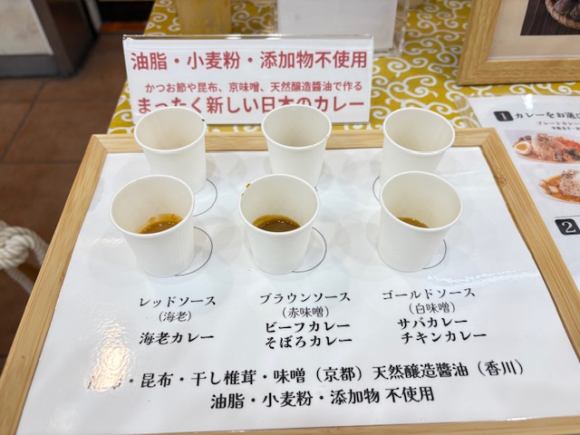 店頭で、種類のカレーソースを試食させていただきました。ソースはトロッとしており、出汁の味がハッキリわかります。