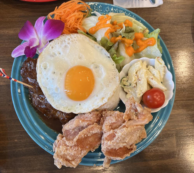 もち粉でからりと揚がったチキンと、目玉焼きを崩していただくロコモコの組み合わせがとても美味しかったです。