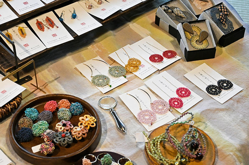 室内では着物に加えてアクセサリーの販売もありました。絹糸を編んで作った繊細な品々、微かな光を受けて輝くガラス細工など、お屋敷の雰囲気を味わいつつ夢のようなひと時。