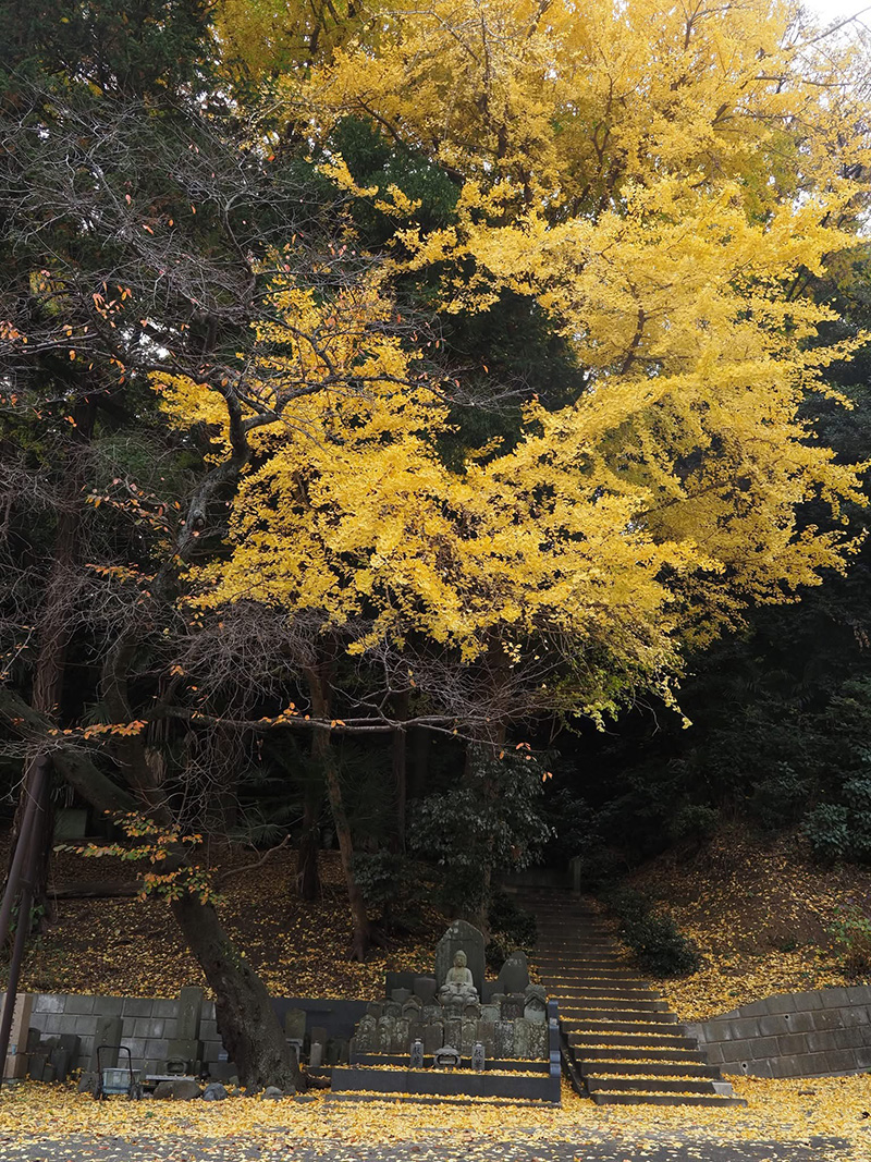 こちらの寺門の奥に銀杏の大木があり、谷戸の影に位置するために黄葉の時期はほのあかりに包まれたかのようにうかびあがり、大変趣があります。