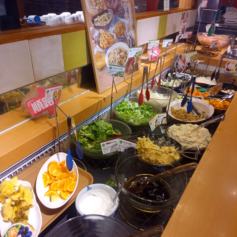 サラダバーは想像以上の品数で、パクチー、ケール、季節のフルーツまで揃っていて圧巻。
