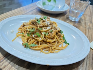 お肉がゴロゴロ入ったボロネーゼ。