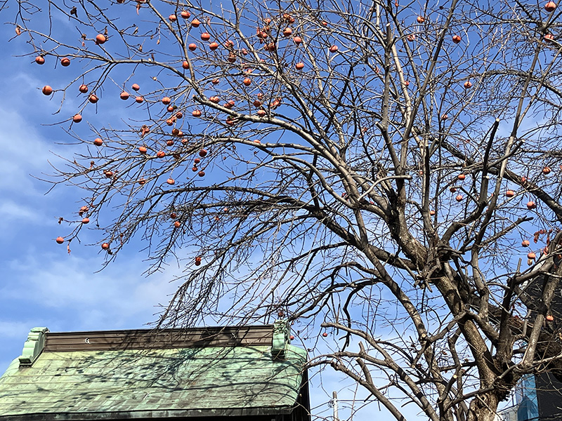 大きな木ありました。たくさんの柿がなっています。撮影したのは12月頃です。