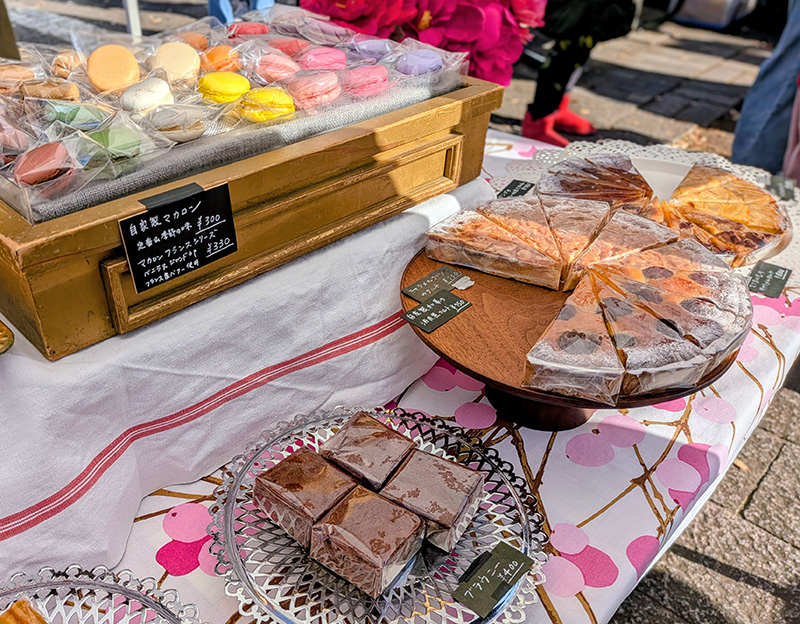 りんごのタルトとチーズケーキ、かわいいマカロンを購入しました。幸せ。