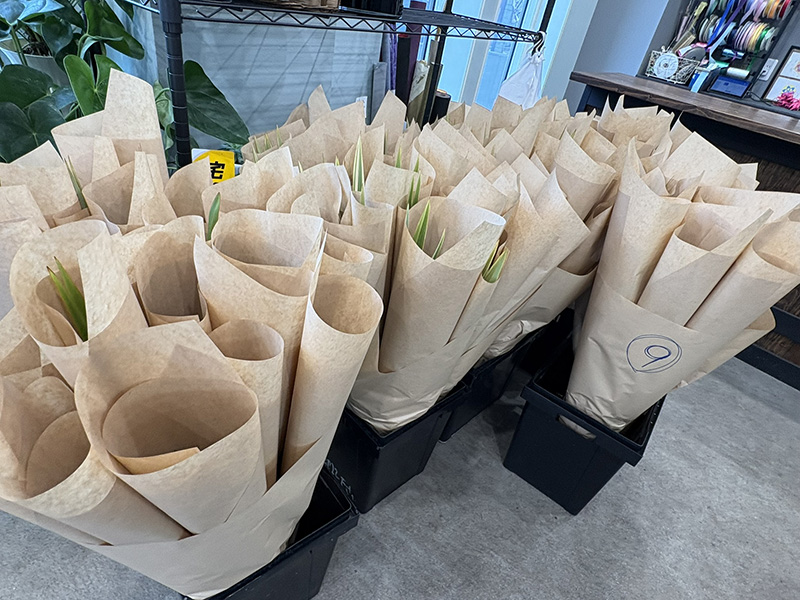 また、いけばなの授業がある学校への納入品がバケツにたくさん用意されていました。