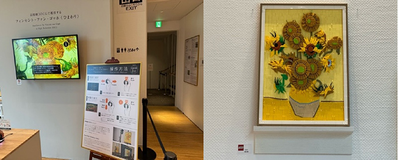 フィンセント・ファン・ゴッホ《ひまわり》を、3Dスキャナーで計測、形状(凸凹)を記録して制作した、高精細3DCGの体験コーナーを美術館の2階に設置されています。肉眼では迫りきれない大胆な視点から、新たな発見ができます。