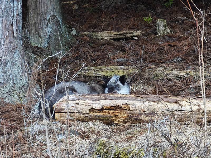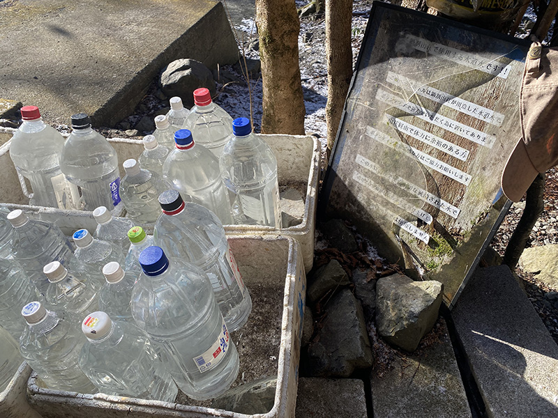 渋沢駅から始発バスに乗り大倉から登山スタートです。雪が残る登山道。雪をサクサク踏みながら登っていきます。途中で水の入ったペットボトル置き場があり、余力がある人は水を運びます。川のところでカモシカに出会いました。3時間ほどで無事山頂へ到着。念願の鍋焼きうどんを富士山を眺めながらいただくことができました。