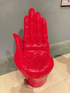 岡本太郎さんがデザインした椅子には、実際に座ることができます。