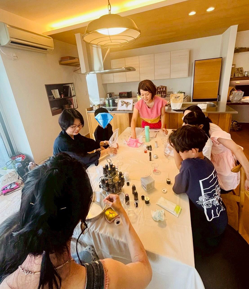 体験することで、アロマで自分の身体に向き合ったり、多肉植物に触ることで普段とは違った癒しを感じてみたり、お花の蒸留会では丁寧に蒸留される様子を見ながら自然のお話をしてみたり。