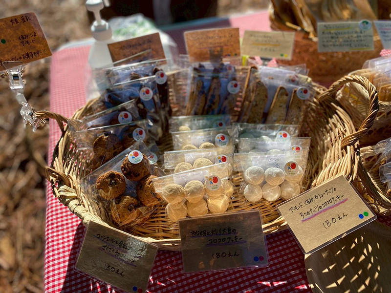 市川さんは、一つ一つ丁寧に手作りしており、小麦の焼き菓子の他に、収穫したお米で焼き菓子、果物を加工してドライフルーツなどもあります。