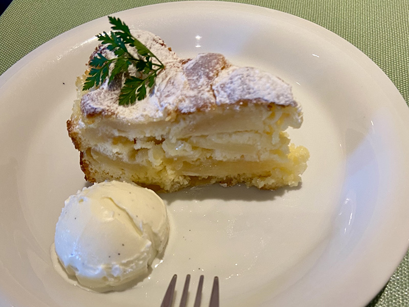 デザートはアップルパイのバニラアイス添え