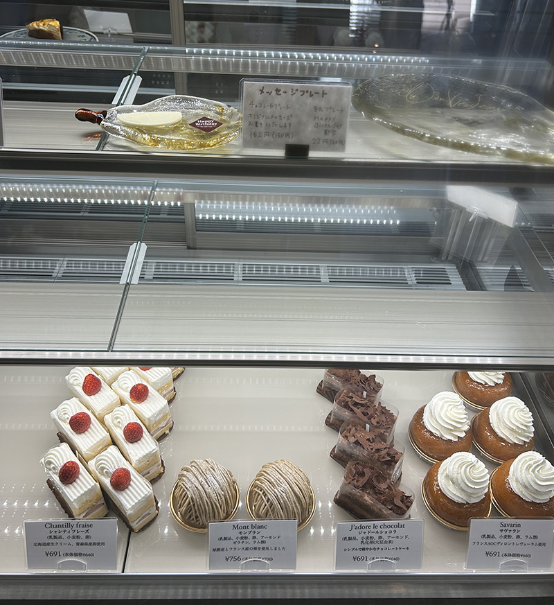 ショーケースに並ぶケーキは、どれも可愛らしくて選ぶ時間も楽しいひととき。季節感のあるデザインとやさしい色合いで、今日はどれにしようか迷ってしまいます。