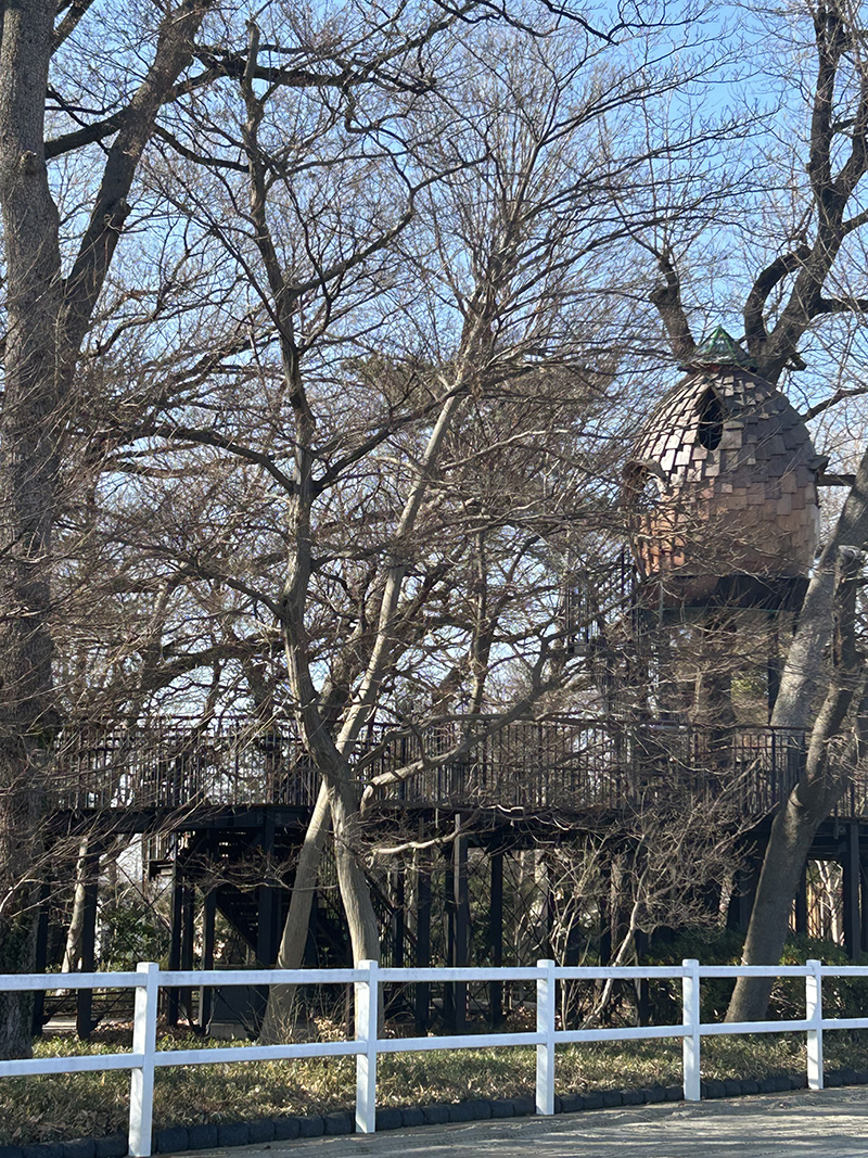 馬事公苑には、思わず目を引くツリーハウスも。自然の中にさりげなく溶け込んでいて、子どもだけでなく大人もつい立ち止まってしまいます。遊び場としてだけでなく、景色のアクセントになる存在があるのも、このエリアならではです。