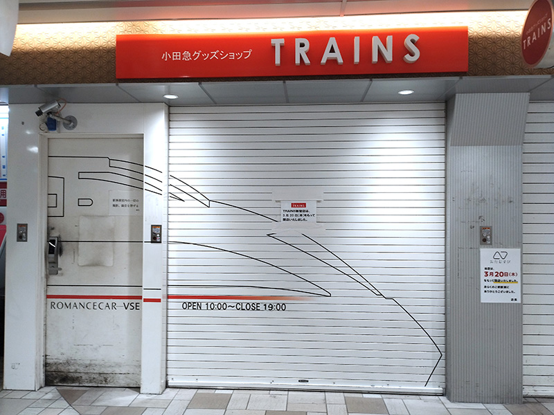 小田急電鉄の公式グッズショップ「TRAINS 新宿店」が、2025年3月20日(木・祝)に閉店しました。