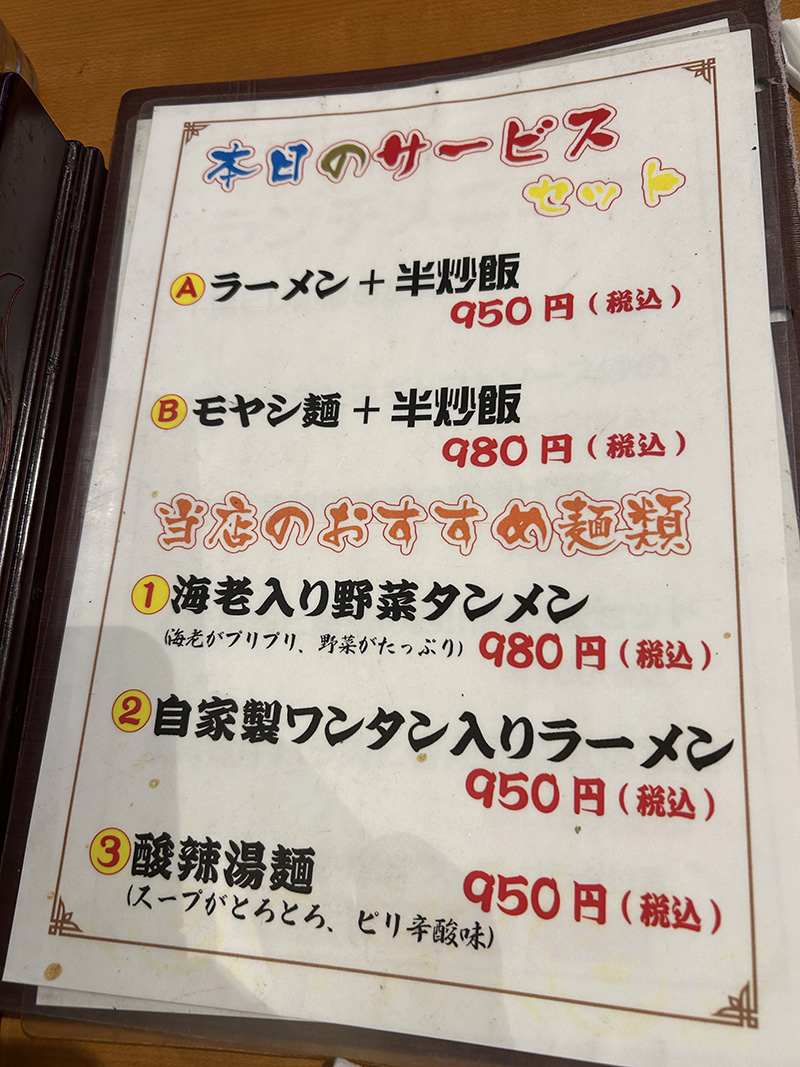 野菜たっぷりの海老入り野菜タンメンは、やさしい塩味のスープにシャキシャキ野菜がたっぷり。ぷりっとした海老も入っていて、見た目以上に満足感があります。こってりしすぎず、ランチでも重たくならないのがうれしい一杯でした。