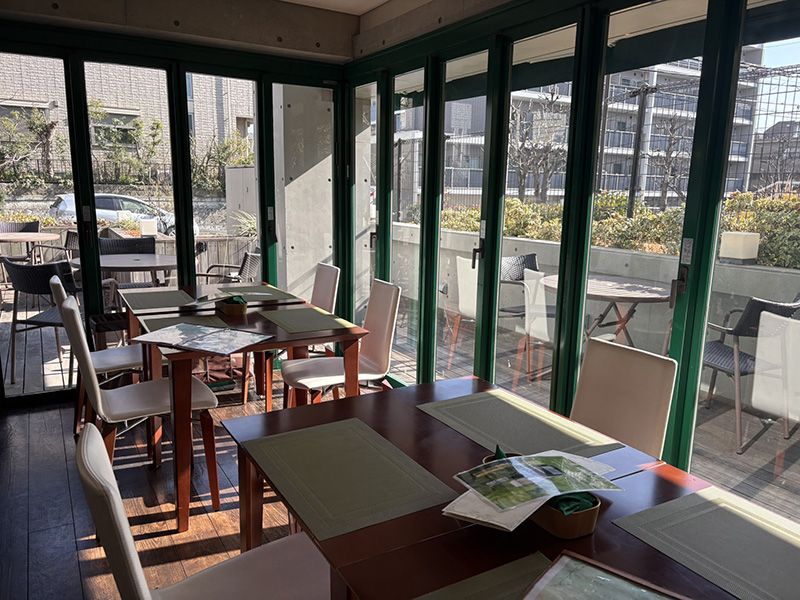 今回訪れたのは1月末で寒いため室内ですが、季候の良い時にはテラス席も気持ちよさそうと眺めながら入店。