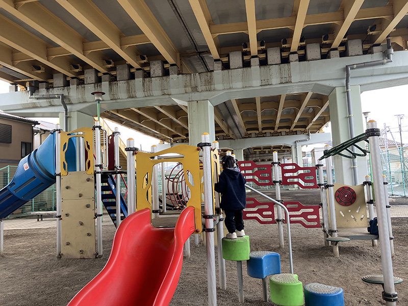 国道246号線の高架下、小田急線の線路の近くにある公園です。
