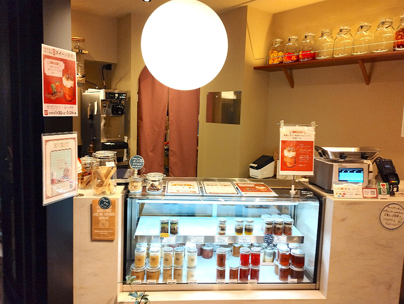 1階は発酵スイーツショップです。テイクアウトができる瓶詰めのパフェが販売されています。