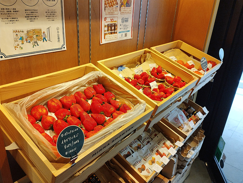 さらに同フロアでは発酵ドリンク、ソフトクリーム、果物の量り売り、さらに平飼い卵(有精卵)も取り扱っています。果物は季節に応じて京都府産の無農薬のいちごなどが計り売りで購入できます。店内にはここでしか買えないこだわり抜いて選んだ商品が並び、リピーターが増え続けています。