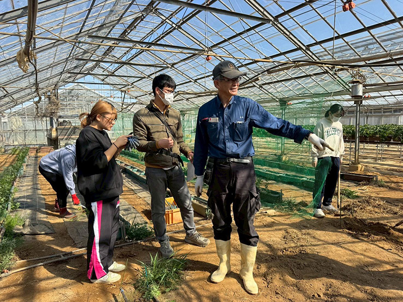 岡上のハウスで土づくり、種蒔き準備をする学生を見ながら、取材は続きます。
