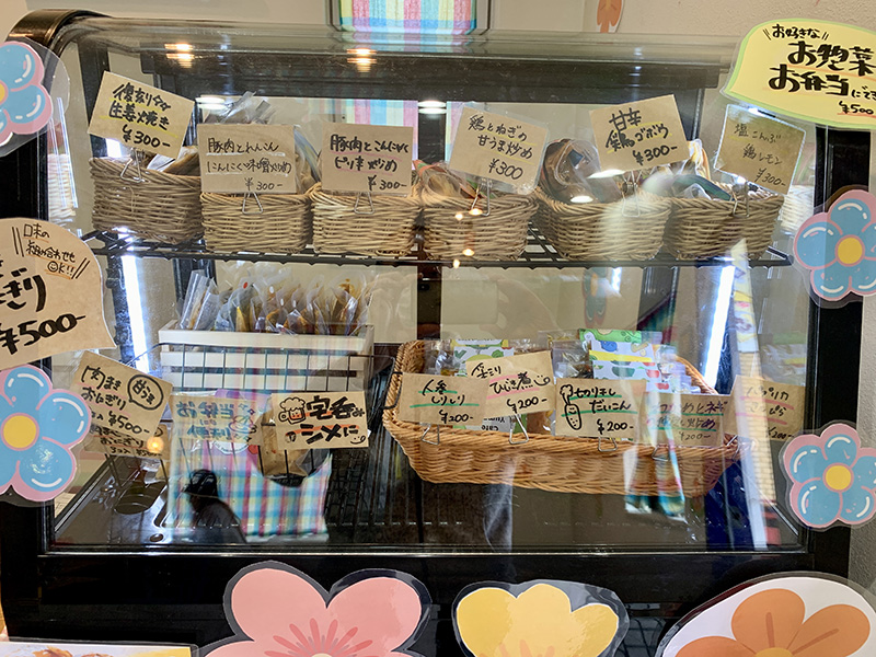 レジ横のショーケースでは、手作りのお惣菜もリーズナブルな価格。
